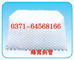 蜂窝斜管填料按材质有聚丙烯(PP)、聚氯乙烯(PVC)、乙丙共聚(PE)和玻璃钢(FRP)四种。 |